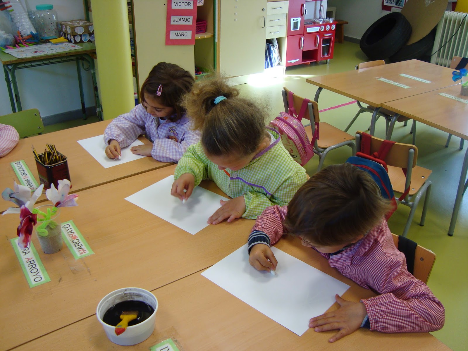 Els infants han representat l'univers i les estrelles amb una pintura MÀGICA!!! Primer han pintat amb ceres blanques damunt un full blanc l'univers, però no es veia el dibuix...Com ho podiem fer?...Hem pintat damunt la seva representació amb tempera diluida amb aigua...Màgia!!